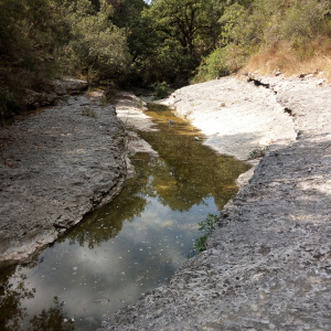 En bord de voie verte (ex-voie ferrée). Alimentée par oued + fossé routier => effet chasse d'eau. Présence "grenouille verte". Environ 50 m²